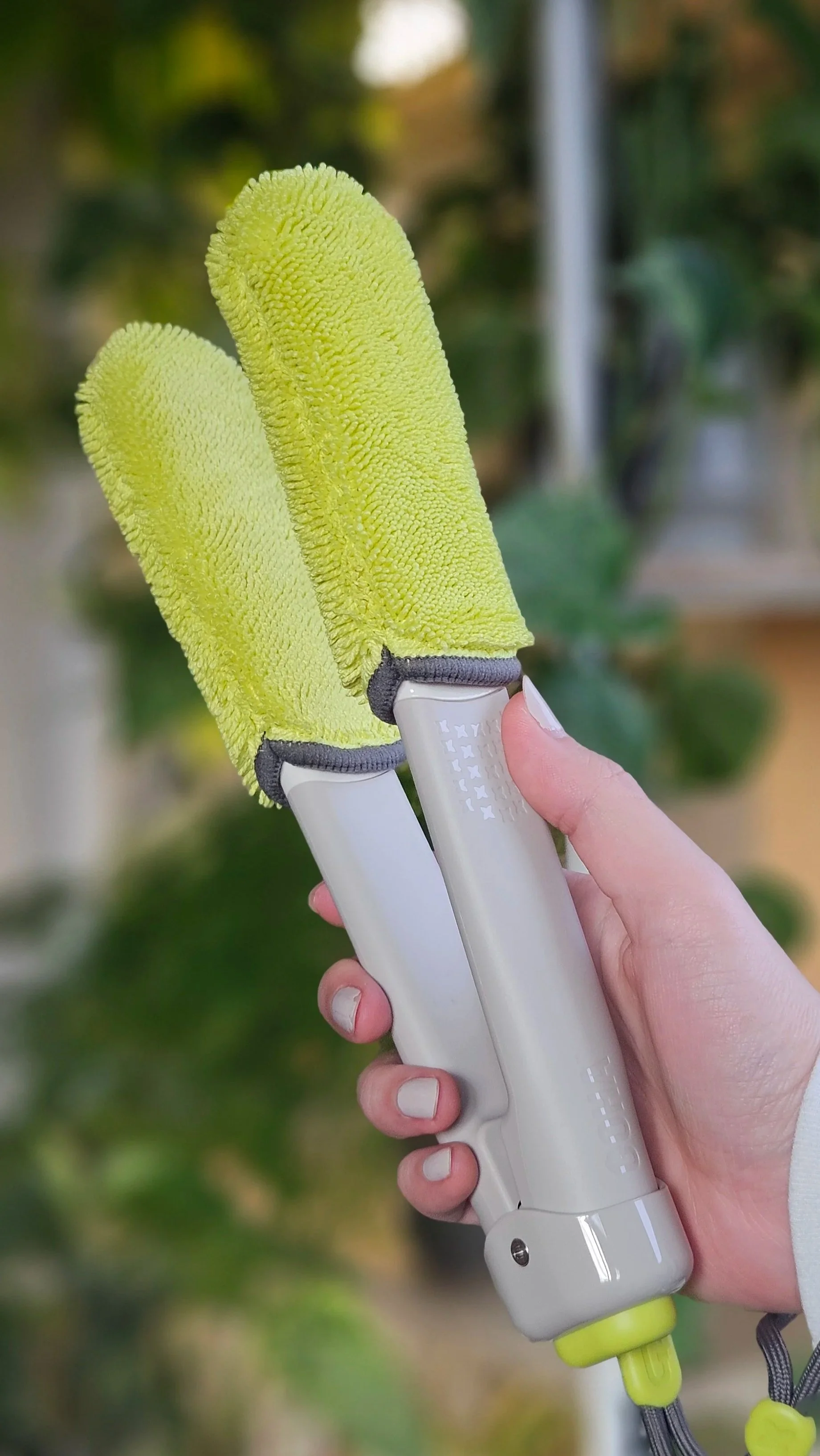 We wanted to design a feature to maximize plant cleaning time and minimize the time in between. In order to achieve this, we saw the need to be able to use both sides of the microfiber towels, which led us to design these rotating tips.