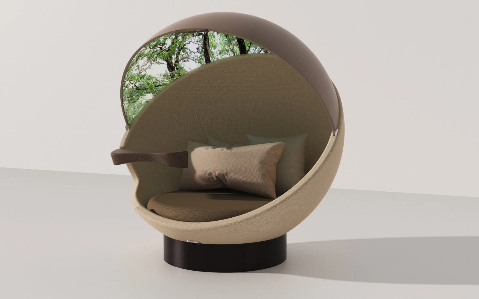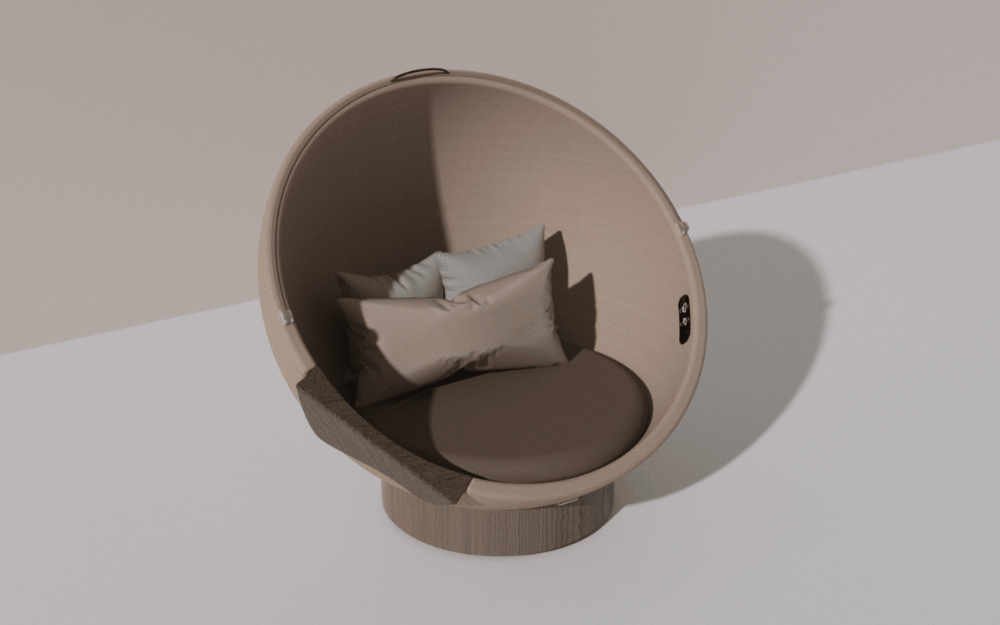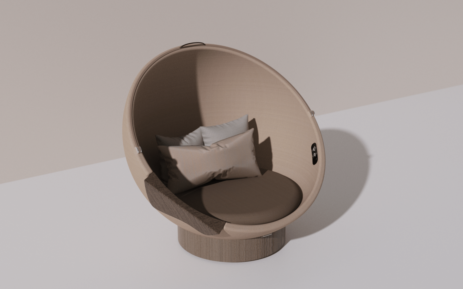 The large bowl shape creates more privacy and comforts the user in its naturally enveloping form. The 360-degree dome screens and embedded speakers provide an immersive escape.