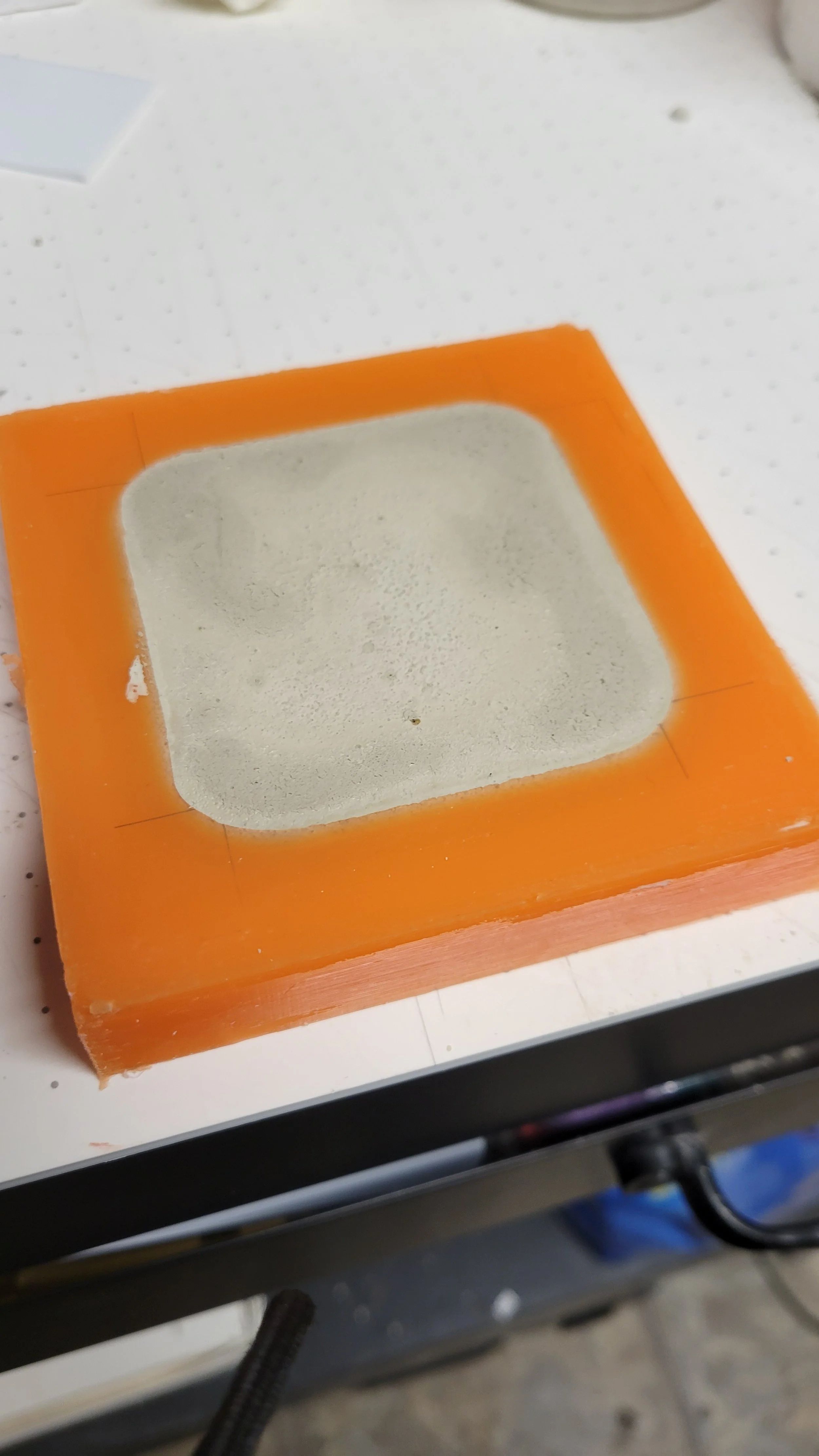Since we were having issues with the 2-part mold, we used the top side of the first magnetic concrete tray to create this 1-part mold.