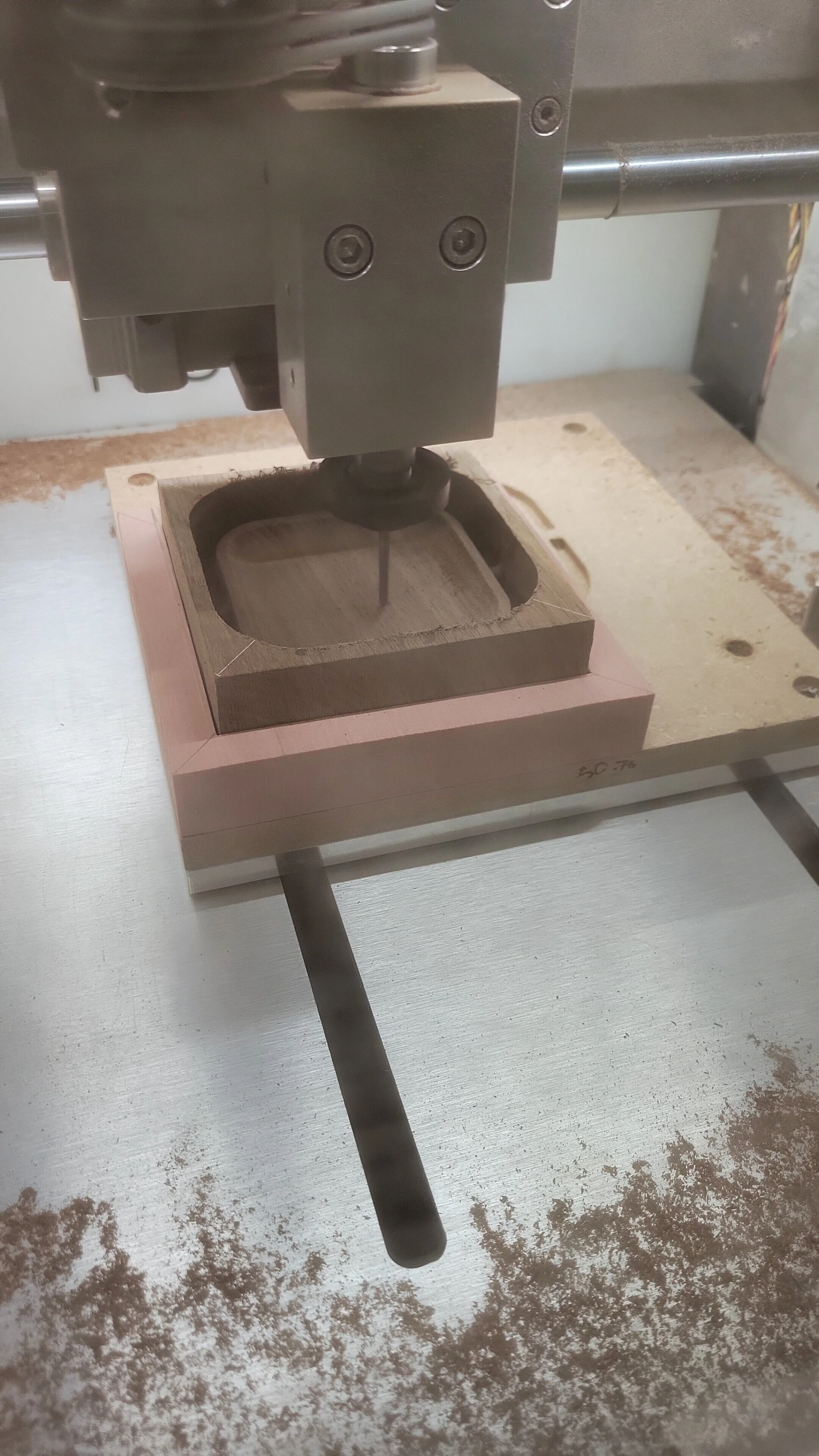 After modeling the tray in Solidworks, we machined a 2-part mold and master tray mold out of renshape on our desktop CNC machine.